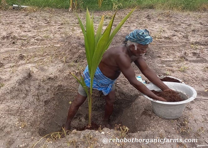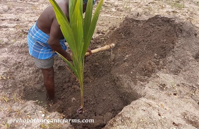 Press the soil well around the seedling and provide the seedling with shade by using coconut leaves or palmy leaves.